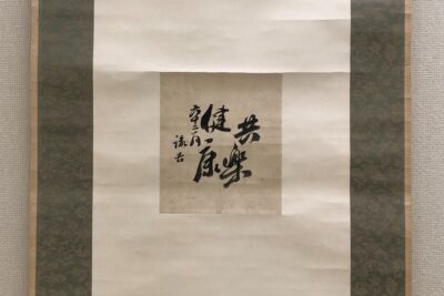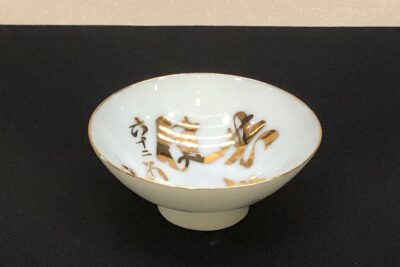 福澤諭吉の還暦祝宴で配られた盃や、盃を制作するために揮毫した書を展示しています。