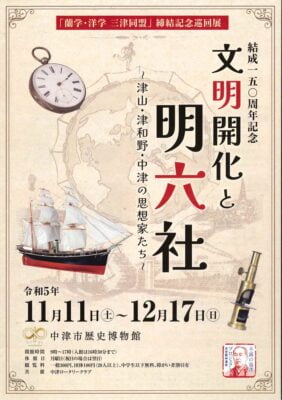 中津市歴史博物館にて、巡回展「結成150周年記念 文明開化と明六社ー津山・津和野・中津の思想家たちー」が始まりました。