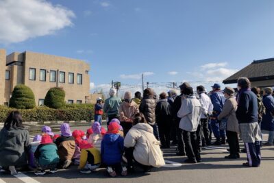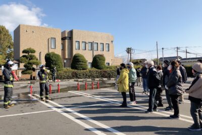 旧邸の庭より火災が発生した想定のもと、地域の皆さんにご参加いただき消火訓練および避難訓練を行いました。