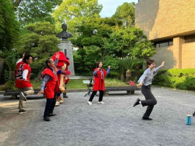 福澤諭吉旧居にて: 振付にも熱が入ります。