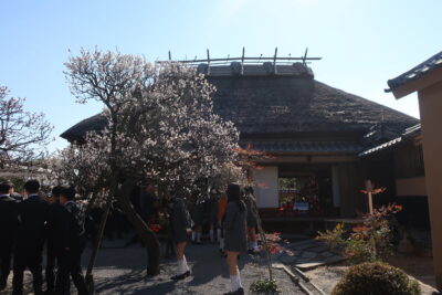 各クラスで和田嘉平治作の福沢諭吉像前で記念撮影を行い、福澤諭吉旧居・福澤記念館を見学されました。