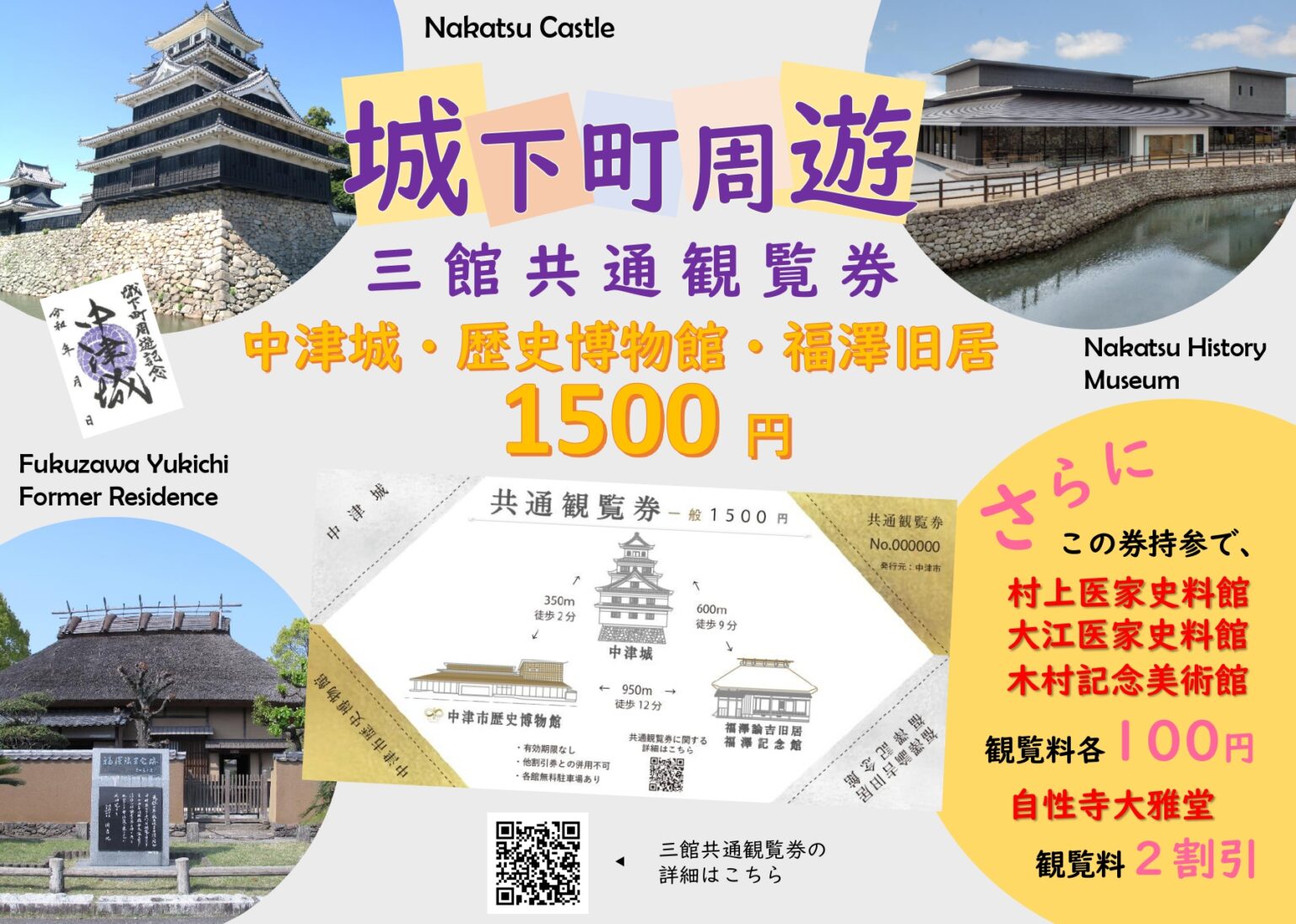 中津城(奥平家歴史資料館)、福澤諭吉旧居・福澤記念館、中津市歴史博物館の3施設をお得にまわれるチケットで中津城下町を楽しんでみませんか?